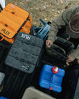 Moins d'emballages et de transferts entre bacs, sacs, caisses et coffres de toit. RUX permet de gagner du temps et de l'espace à chaque étape du chemin, du garage au camion, jusqu'au départ du sentier.