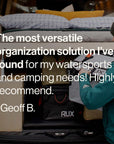 Découvrez tout le potentiel du système RUX et profitez d'économies avec cet ensemble exclusif: le RUX 70L original, 2x RUX Bag 25L, 2x RUX Pocket 3L et deux ensembles de RUX Utility Straps .