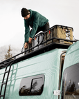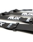 Les sangles sont spécialement conçues pour attacher votre RUX 70L aux porte-bagages et aux rails. À une extrémité se trouve une boucle RUX, qui se connecte directement au rail utilitaire de votre RUX 70L. À l'autre extrémité se trouve un crochet électronique RUX qui vous permet d'accrocher la sangle autour d'un rail.