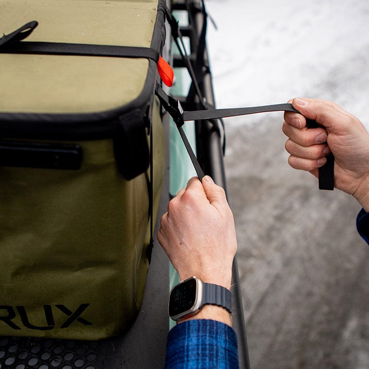 RUX Waterproof Bags and Soft Coolers have similar lash points, again making it easy to slide a Utility Strap through and secure something in place. Secure a Waterproof Bag to a SUP, or a Cooler Cube to a bike handle. Anything goes.